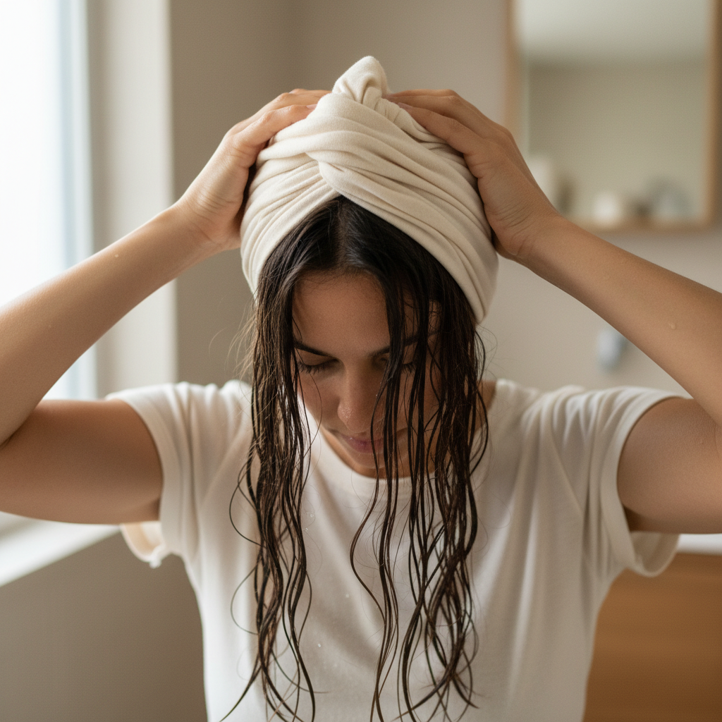- Avoid Rough Towel Rubbing: Instead of aggressively rubbing with a standard towel, gently blot your hair with a soft cotton t-shirt, bamboo towel, or microfiber towel. These materials are less abrasive and absorb water effectively.